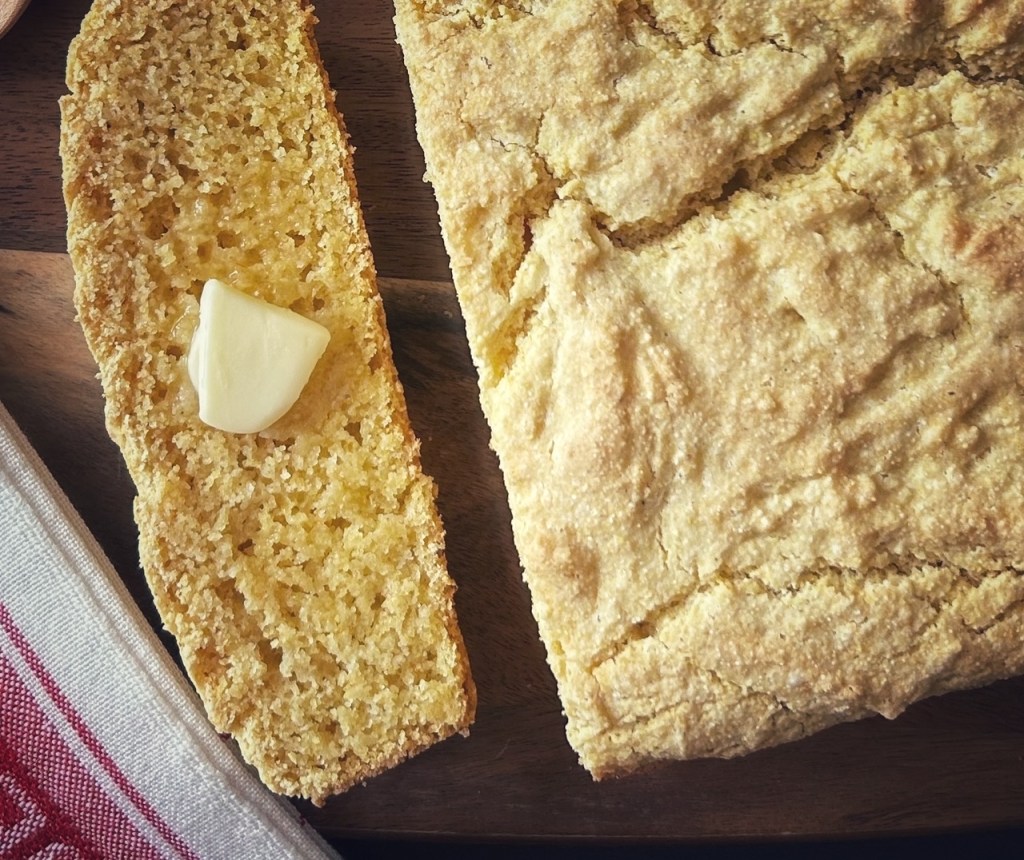 A note from Patricia: This cornbread can easily be made gluten-free by substituting a 1:1 gluten-free baking flour.