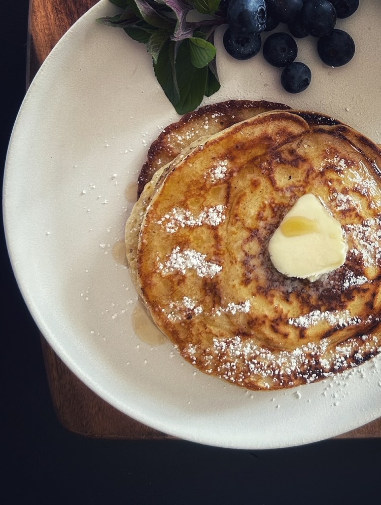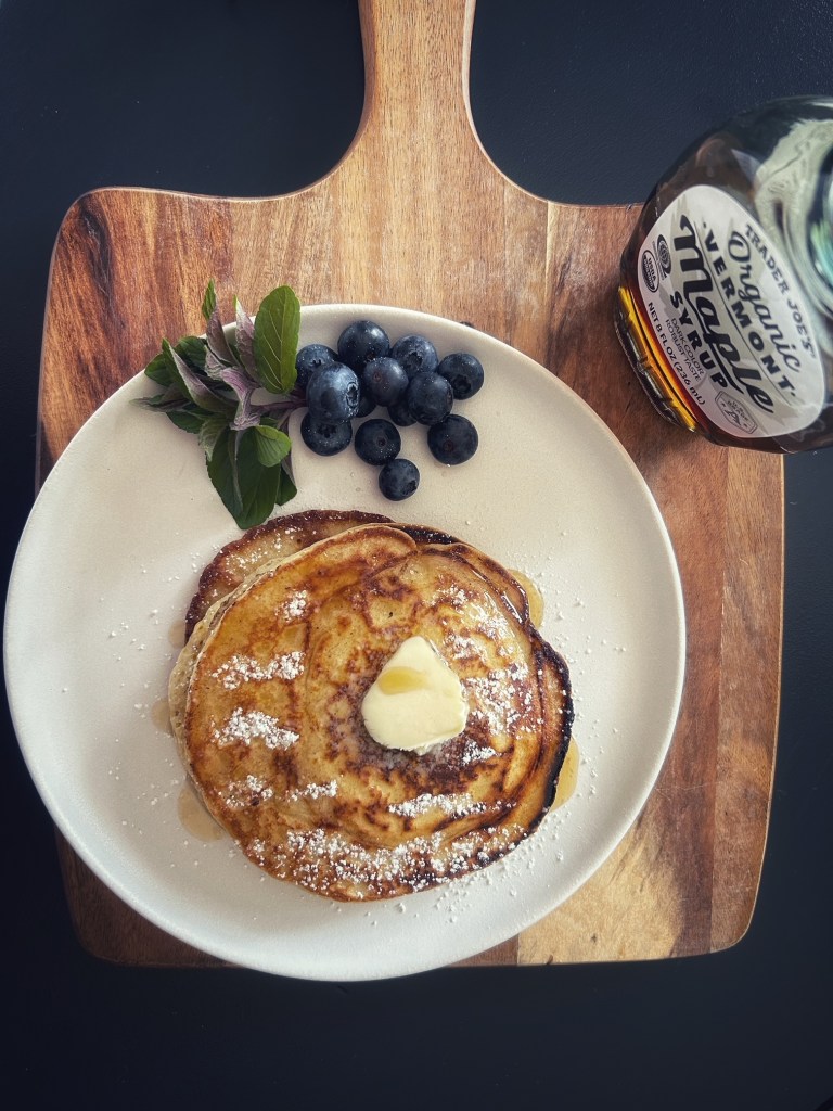 Serve hot, with butter and maple syrup. I also enjoy a sprinkling of icing sugar.