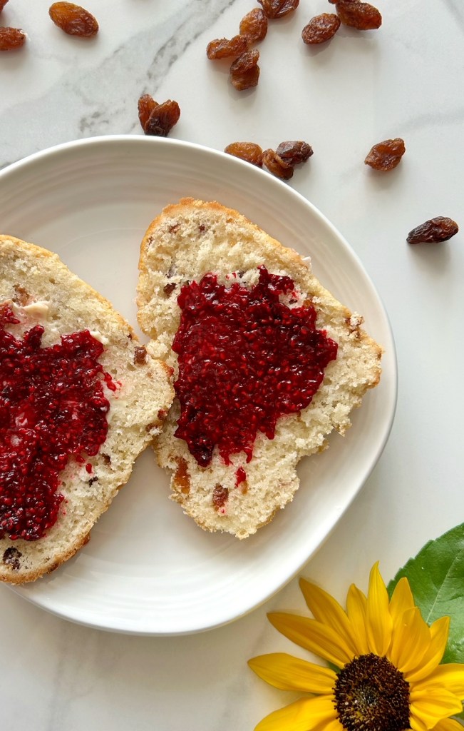 A note from Patricia: I always gravitate towards a cheese scone or a plain scone, but I thought I would give these a try next as I had raisins on hand, and lard was on sale this week (I’ve never used lard before so this was a first!). And really, all scones are amazing with their crusty outsides and fluffy insides. I substituted the all-purpose flour in the recipe above for 1:1 gluten-free flour, and the substitution worked out well, and I baked these in the oven (vs. on the stovetop). These Raisin Scones were lovely – lightly sweet and crusty with soft middles. They were fantastic straight from the oven slathered with butter and homemade raspberry jam, and were fabulous reheated for breakfast the next day. I even made a quick glaze of powdered sugar, cinnamon and milk to drizzle over a few of them (because why not?). I loved how easy these were to make, and will definitely make these again – they’re a perfect weekend treat.