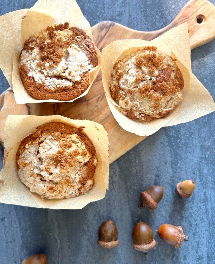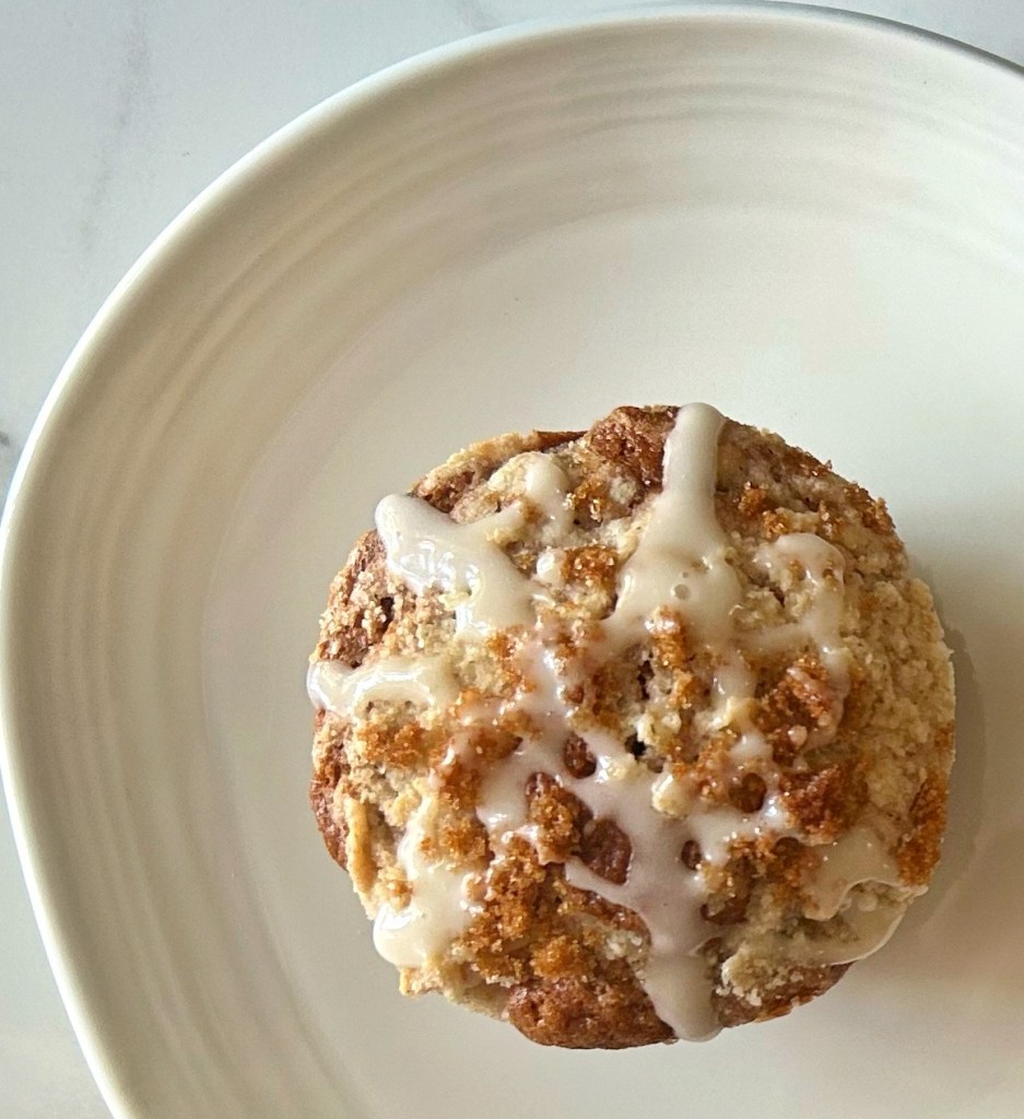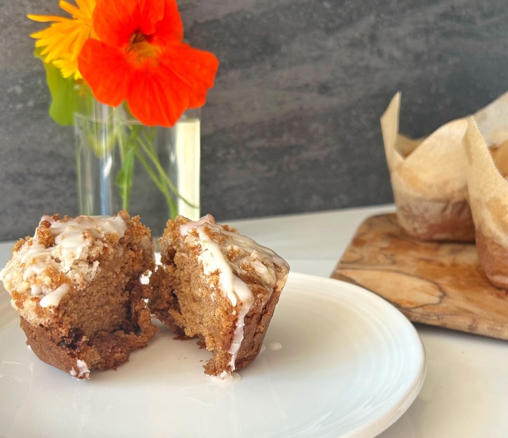 A note from Patricia: When I was reading through this recipe, it seemed “fall-like” and cozy, and I do love raisins and a crumb topping, and so this was next on my list to attempt. However, decided to go a bit sideways with this one, and made half the recipe in muffin tins, and the other half of the recipe I cooked in a small tube pan. For some reason, I wanted to try this in muffin/cupcake form – I imagined running out the door with a cakey-muffin for breakfast along with a travel cup of coffee. I substituted 1:1 gluten-free baking flour for the all purpose flour in this recipe, and it worked out wonderfully. I sprinkled a touch of brown sugar on top of the crumbly topping for good measure, and once these were out of the oven and cooled, I added a drizzle of simple icing (icing sugar + vanilla + milk). The verdict? Deeeeeelicious. I loved all of the spices, and the little bursts of raisins throughout, and the crumb topping gave it an added crispy texture that I adored. Definitely a fall treat!