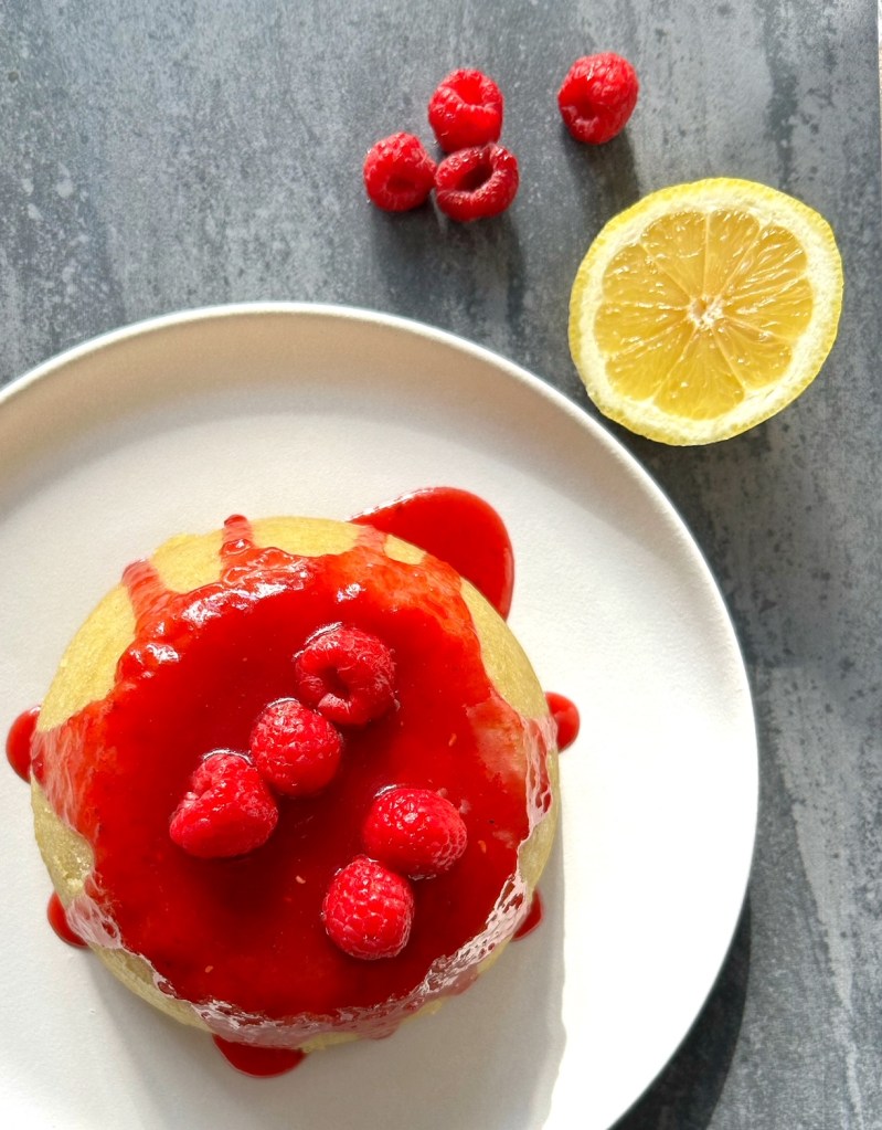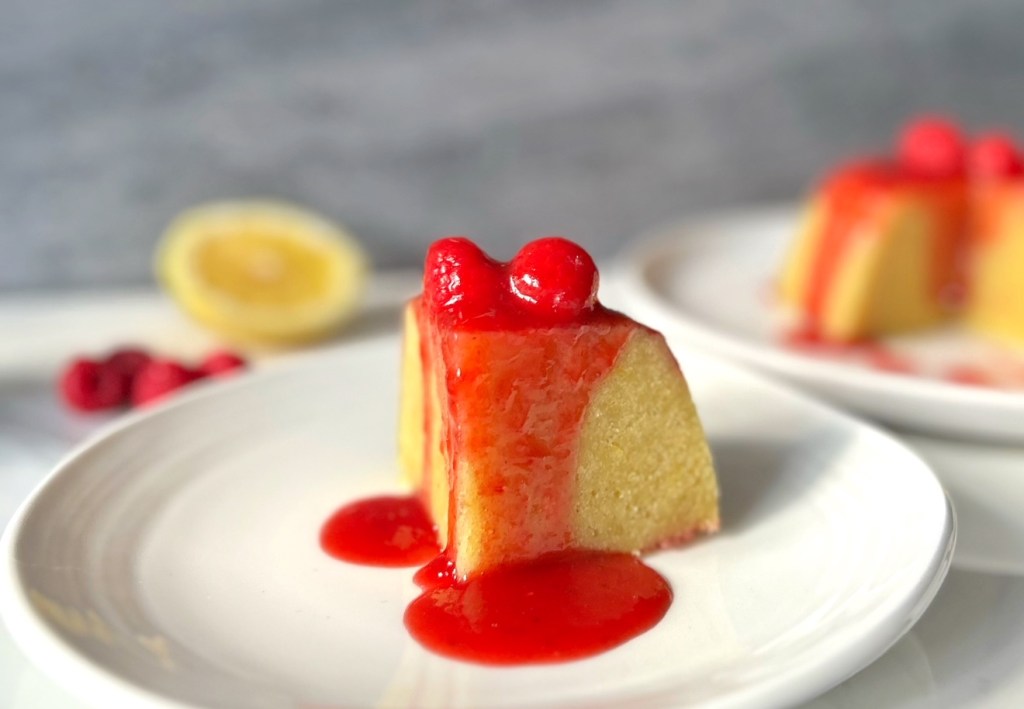 A note from Patricia: I decided a few months back that I’m in love with the idea of puddings with their luscious sauces, and so I purchased a Mason & Cash pudding bowl from Indigo so that I could feel professional, and was eager to try it out. I had also read somewhere that you can steam a pudding in a crock pot, so I decided to give that a try. I covered the top of the filled pudding bowl with a piece of buttered parchment and then a piece of tin foil, tied a string around it to secure it, and then placed it in an inch or so of water in the bottom of the crock pot – so easy! I used 1:1 gluten free flour in this recipe to make it gluten-free, and decided to pair it with a Fruit Sauce (although the Lemon Sauce was also really tempting). My pudding steamed in the crock pot for about 2.5 hours, and let me tell you, it was really delicious. The lemon flavour was light and lovely, and the Fruit Sauce made this absolutely delightful. It was moist and sweet and sumptuous. Cake + Sauce = Heaven.