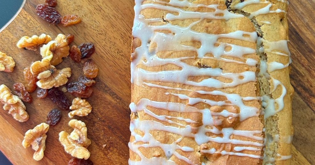 A note from Patricia: My dad was always a big fan of raisin bread, especially as his ‘midnight snack’, so I thought I’d try my hand at bread making with this straightforward raisin bread. This was another recipe that my aunt had noted “to try” but she hadn’t yet tested it, so I read up on other raisin bread recipes to determine what the oven temperature should be. From reading all of the delicious raisin bread recipes out there, I thought that adding in some cinnamon and nutmeg might make this extra delicious, which is why they have both been noted as optional ingredients. I also went with walnuts, as the original 1915 recipe didn’t specify what type of nut to use, and it seemed like the logical choice. I halved the recipe and used 1:1 gluten-free baking flour so that my raisin bread could be gluten-free, and once it cooled, I decided to make a glaze/drizzle to put on top with icing sugar, vanilla and milk because…. well why not? The verdict? Amazing. I’m definitely glad that I added the cinnamon and nutmeg, and I was pleased to find that this raisin bread was moist with a really great texture. I’m imagining all of the things that I can do with this bread – PB&J sandwiches, french toast, a grilled cheese with white cheddar, bread pudding…. so many possibilities! When you can’t eat gluten, having fresh bread that’s gluten-free is pretty rare and pretty special, so I imagine I will devour this bread fairly quickly. Regardless, whether you make this bread with GF flour or regular all-purpose, this bread will give you a ‘raisin’ to smile.