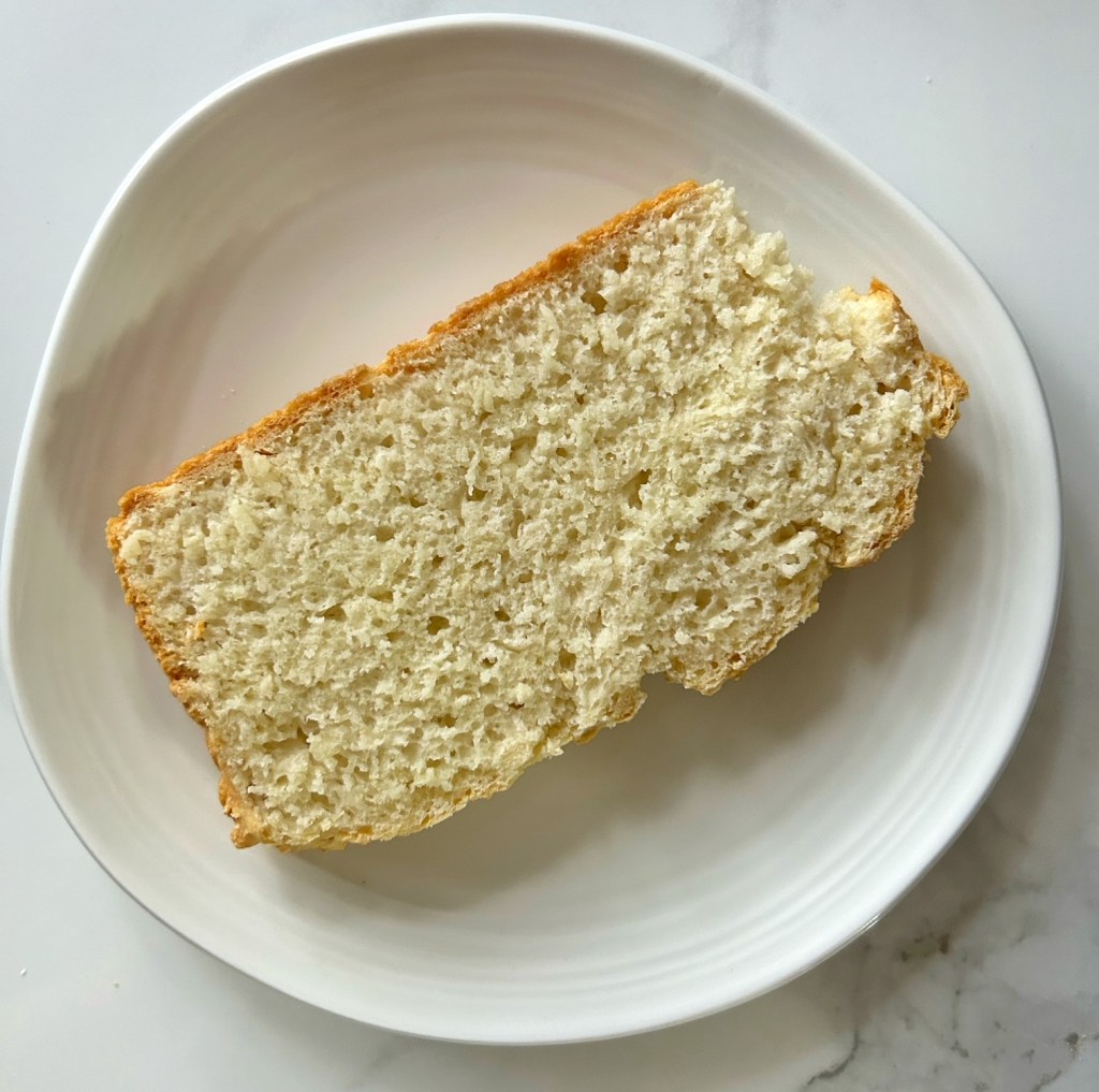 This Baking Powder Bread has a nice flavour, and a distinctive texture; it is moist, and keeps well, and makes excellent toast – so surprisingly easy and good!