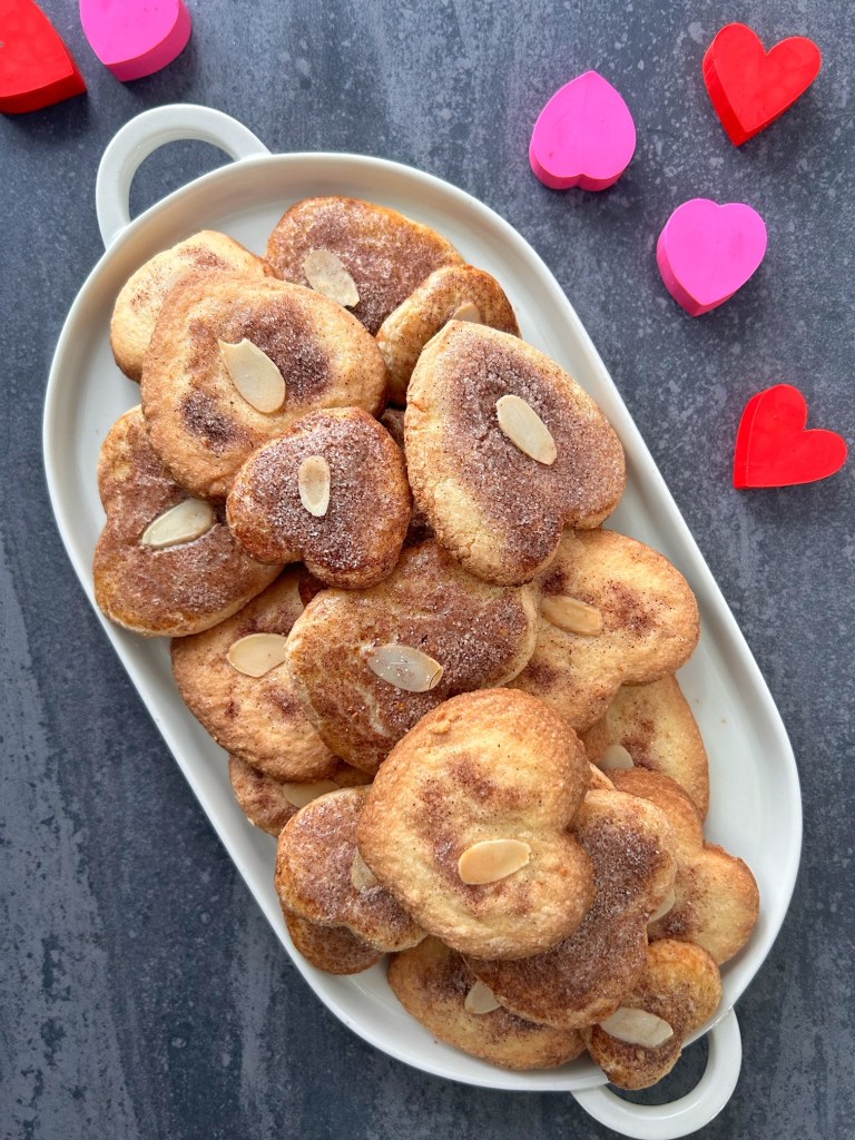 A note from Patricia: Let’s feel the love with these heart-shaped cookies! Yes, I opted to use heart cookie cutters for these (vs. cutting them into simple squares – booooring), and I’m glad I did. These little cuties were very easy to make, and my aunt was correct about the smell that wafted through my house while baking these – they were sweet and cinnamon-y and did indeed bring back cozy memories. I put the dough into the fridge for one hour before rolling these out – I’ve learned from experience now that this makes life much easier. I also made these gluten free by using 1:1 gluten-free baking flour, and it worked out well. The verdict? I simply loved them. Cinnamon baked into anything is glorious in the fall and winter, and these cookies really hit the spot with a hot cup of tea on a freezing cold, grey day here in Canada.