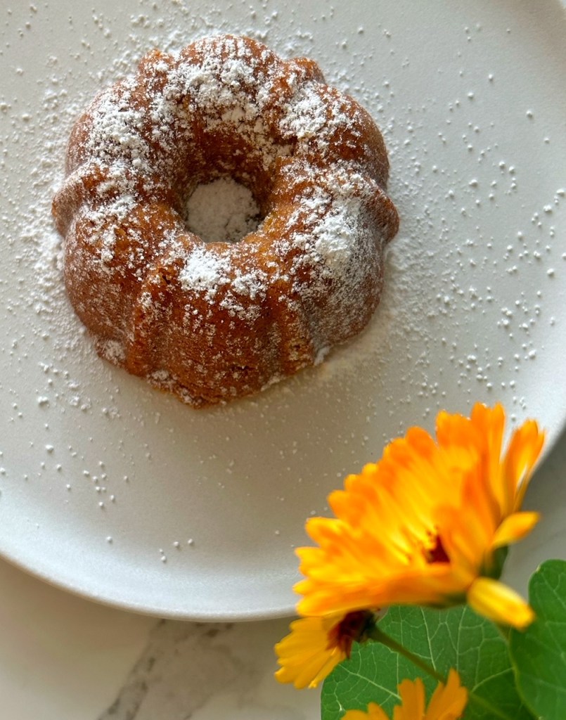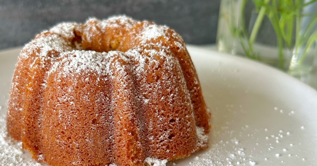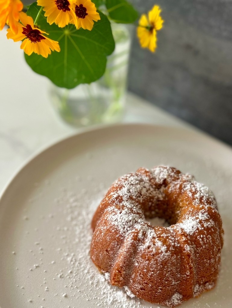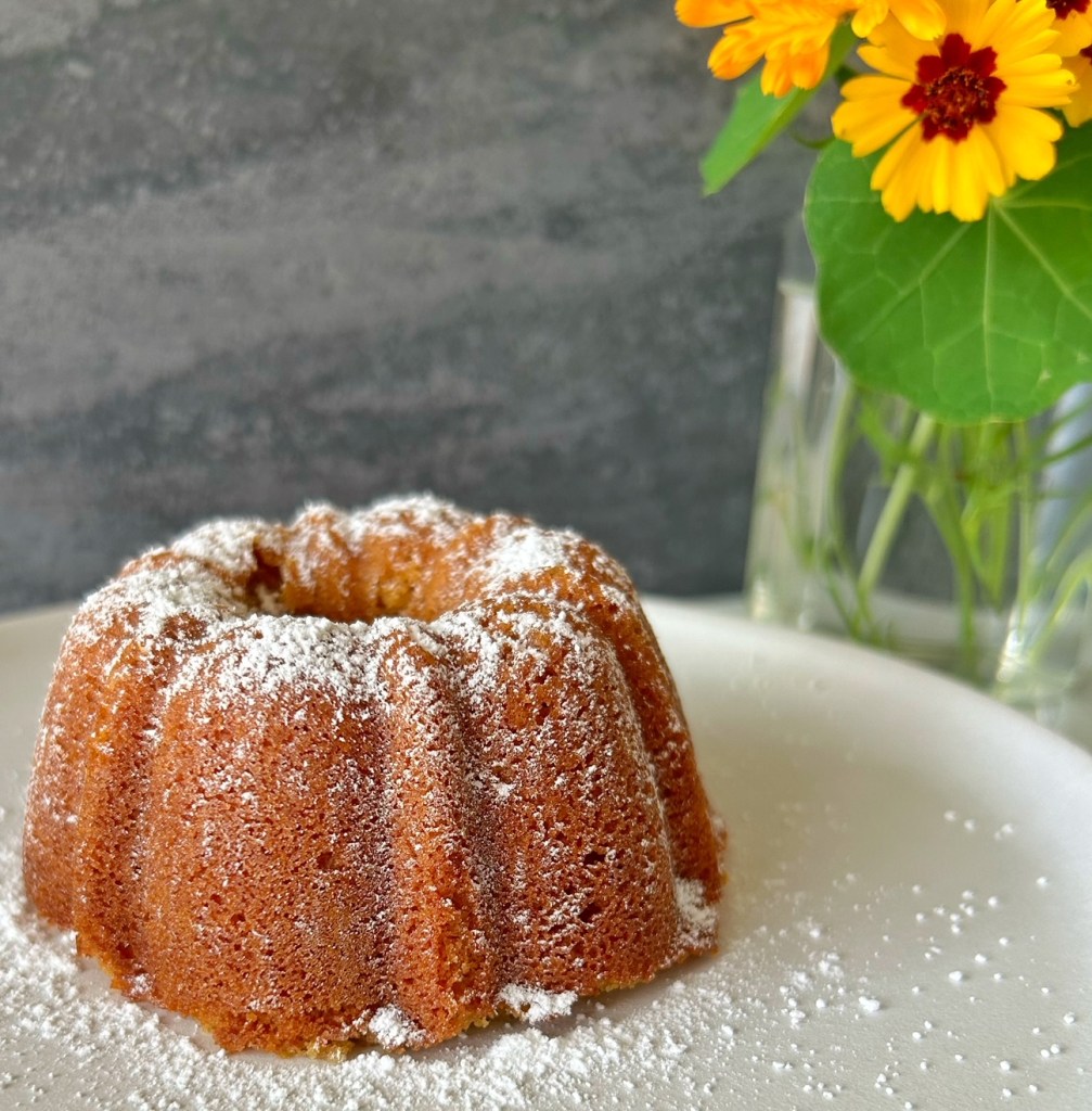 Bake in a preheated oven at 350F for approximately 40 minutes if using the loaf pans (and approximately 30 minutes if using the baby bundt pan). Bake until lightly browned, and a cake tester, when inserted into the centre of the cake, comes out clean.