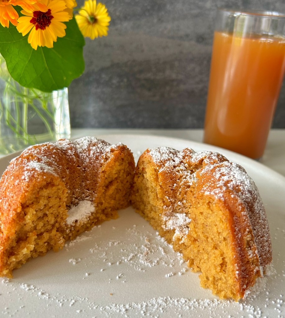 Yield: 8 – 10 servings if made in loaf pans (4 – 5 slices per loaf), or 6 larger servings if made in the 6-cavity baby bundt pan.