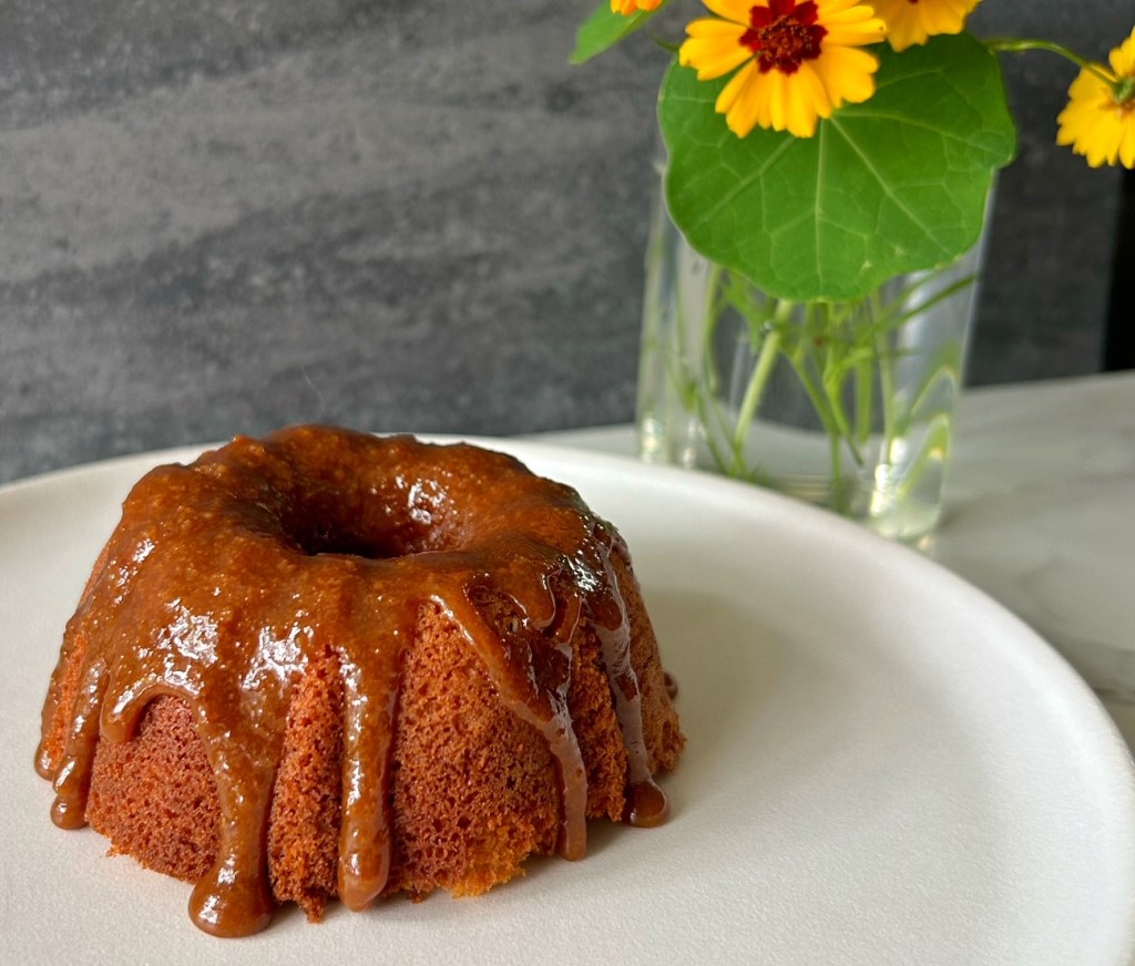 A note from Patricia: I bought my baby bundt cake pans about a year ago, and am always looking for ways to use them. Things are just better when they are made in the form of a baby bundt, so I thought I would try out this cider cake recipe in bundt form, instead of baking them in the loaf pans as the recipe directed. This cake is fantastic – it’s moist and full of spice and feels like a warm hug. I used 1:1 gluten free flour and it turned out beautifully. I made sure to grease the tins with butter, and then sprinkled flour over the butter to more easily remove the little bundt cakes from the tin once cooked. To finish these off, I dusted them with sifted icing sugar, and they looked quite pretty but I’ll be sure to drizzle some maple syrup later on when I’m having another. (To be honest, I attempted to make a caramel sauce on the stovetop to pour over these, and it was a fail…. it turned into hard caramel candy… oops. See the photo below.)