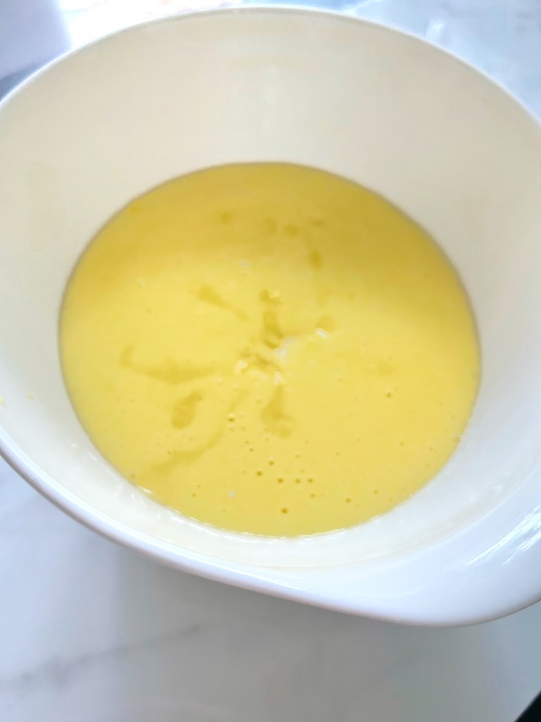 Combine this mixture with the milk in the top of a double boiler.