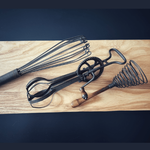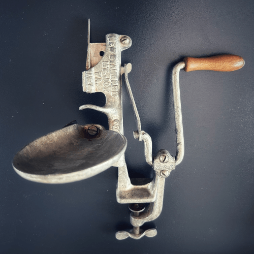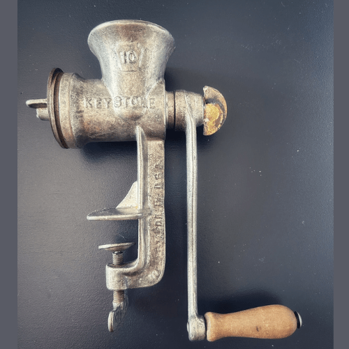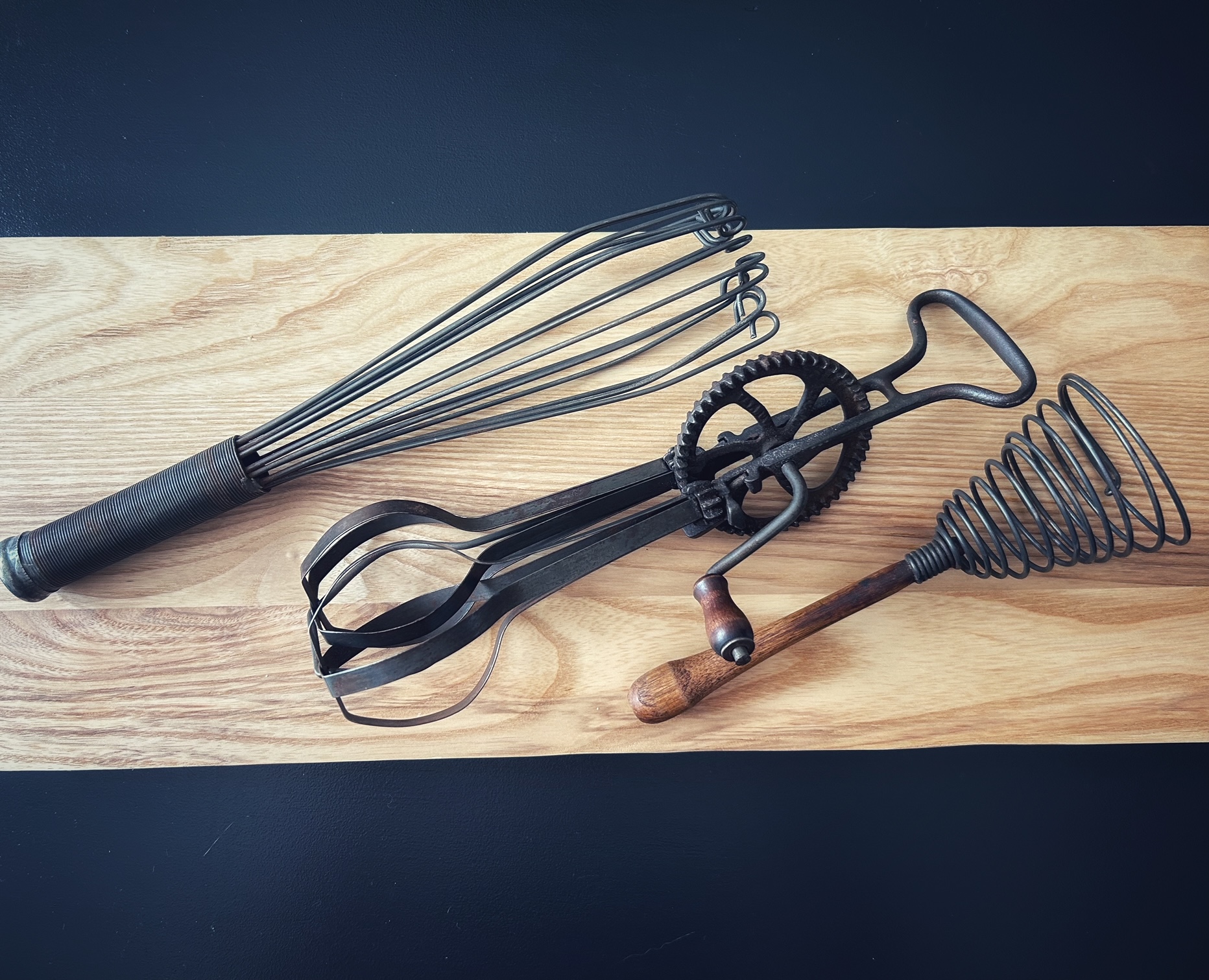Throughout the decade of research that my aunt Margie put into ‘The Prog Basket’, she collected numerous antique cooking tools for photography and staging purposes for the future cookbook. Popping into antique markets, and attending the annual Christie Antique and Vintage Show in Dundas, she was able to amass all sorts of interesting pieces that give us a glimpse into the past and how food was prepared. All of these items were lovingly wrapped and stored in boxes, which I have now had the immense pleasure of sorting through. Below are photos and short explanations of a sampling of these gadgets and utensils.